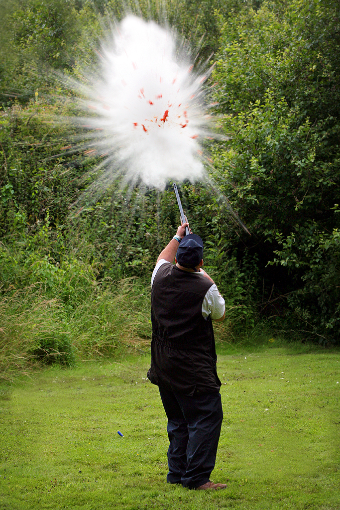 Well, here are a few more pictures from today’s mini shooting fair at E J Churchill. I spent much of my time talking to people and enjoying myself so did not take as many pictures as one would have hoped.  However here are some that made the edit! Mickey Rouse stole the spotlight today with his amazing shooting skills, although I don’t fancy going around to his place for a fruit cocktail! I met many great suppliers today including gun dog trainers Ian and Jill Clinton of Working Dog Company, Bridie Hicks of Hicks Hides whom makes beautiful handcrafted leather belts, The Foxdenton Estate Company with their delicious fruit gins as well as many other great suppliers. Check out the EJ Churchill website and Twitter feed to find out who the other great suppliers were. The staff ar E J Churchill have done a fabulous job at pulling out the stops and organising a mini fair for us punters in such short notice. Sounds like it going to be a nice sunny day tomorrow so I’d recommend unlocking that shotgun and getting down there for a round or two of clays! Just don’t take any tomatoes along! 😉